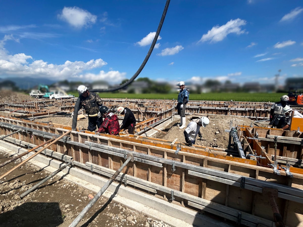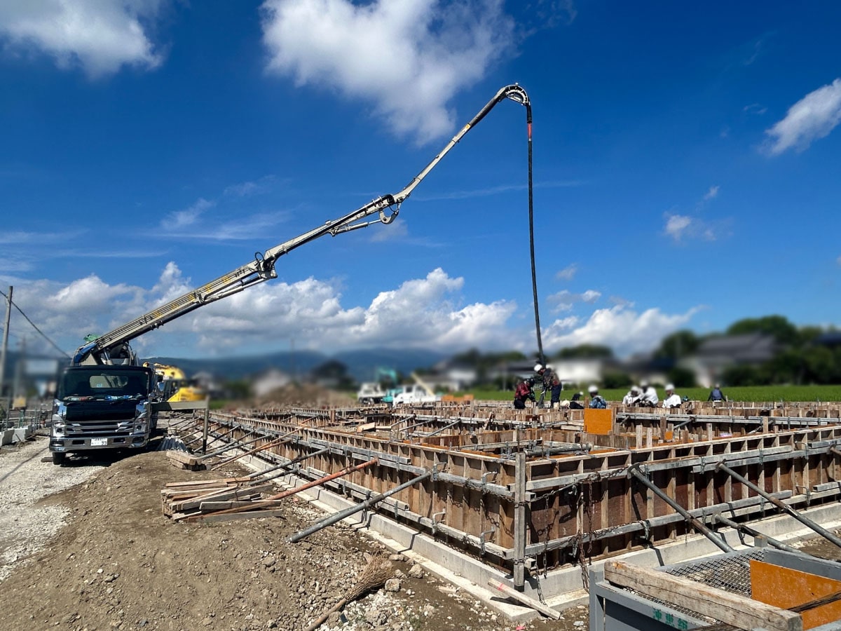 コンクリート打設工事の見学 25.10.03 店舗デザイン 某所で建設中の物件にて、コンクリート打設の立ち合いをさせていただきました。 トラックに積んである大きなパイプを通じてコンクリートを型枠へ流し込んでいる様子です。 生コン車(生コンクリートを運ぶ車)にも近寄ってコンクリートの流動性の確認。 本物件に関わらず真夏の猛暑の中作業いただき、現場の方々には頭の下がる思いです。 実際に工事の様子を立ち合いさせていただき、現場の方の意見を聞かせて頂きました。 設計に反映にするようにします。 CARAMEL 安田