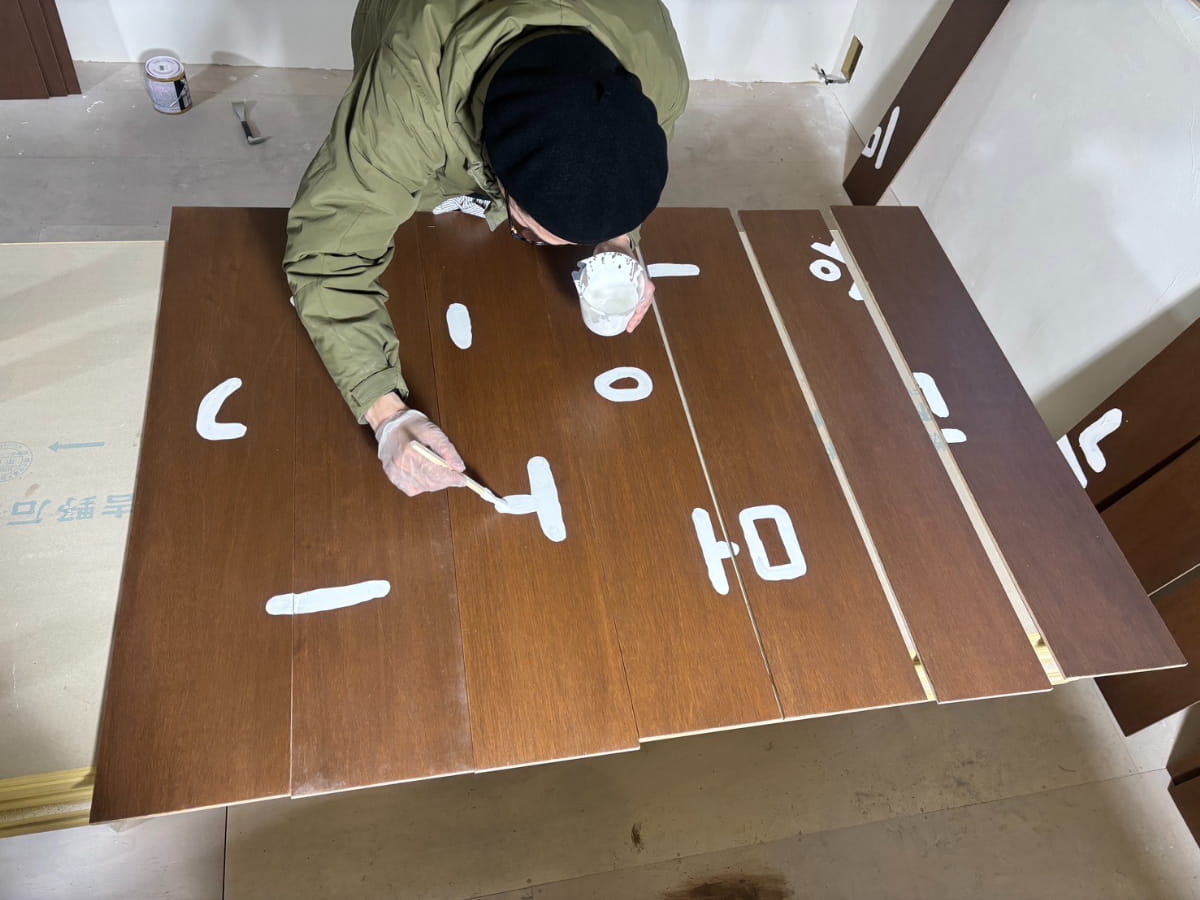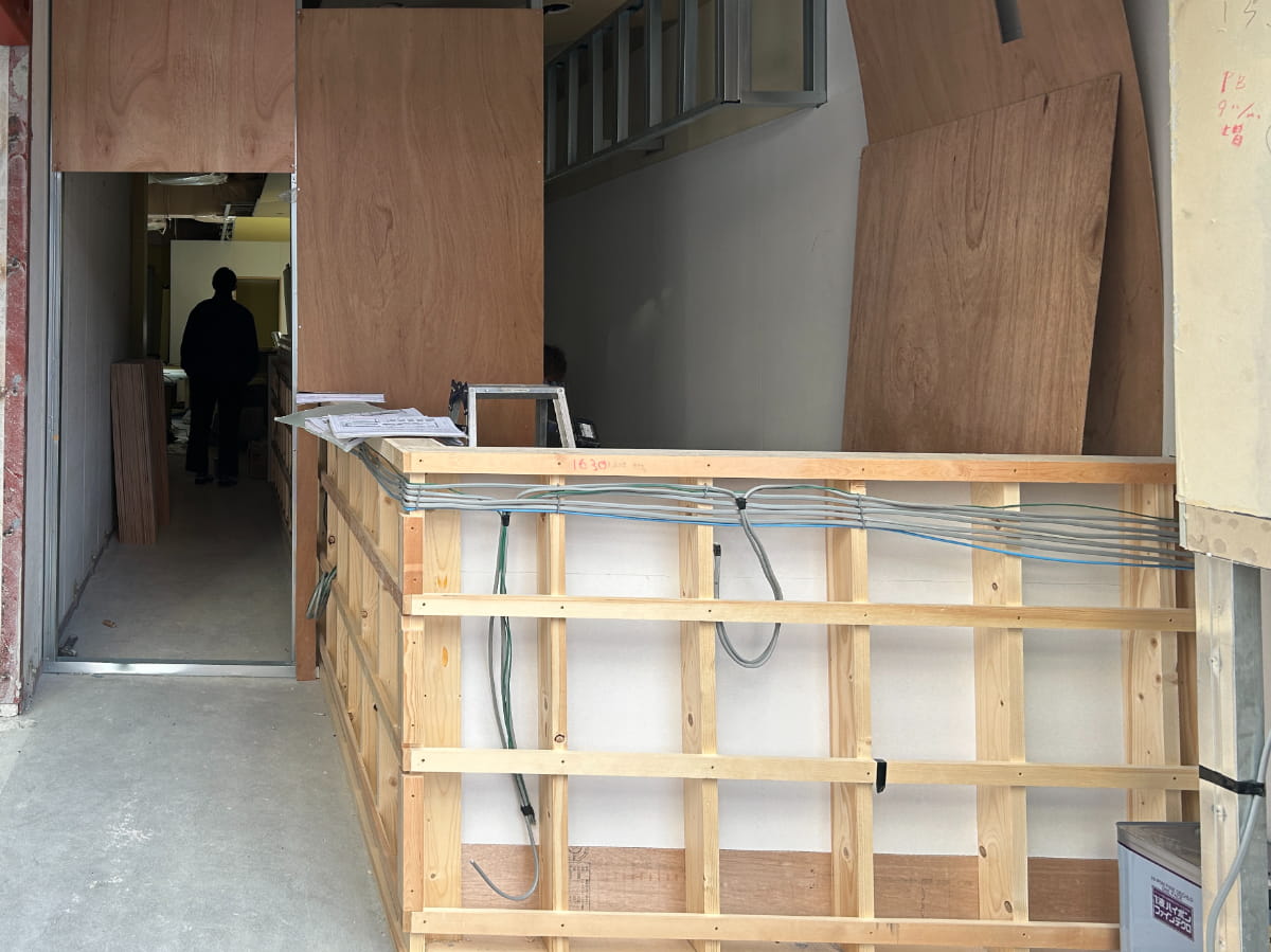 立飲み屋さん現場の様子 26.02.24 店舗デザイン 名古屋市某所で進行中の立飲み屋さんの現場の様子です。 解体から始まり、 カウンターの実物大モックアップの確認をして、 塗装色や、木の色の確認もして、 屋外サインも実物大にてサイズ確認し、 木板にペイントもして、 その他もろもろ着々と進んでいます。 実物大の確認と細かな素材選定を積み重ねます。 お店のオープンがとても楽しみです。 CARAMEL 安田